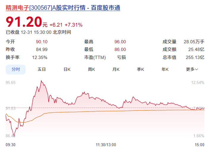 受消息面影响,2025年最后一天,其股价狂飙,截至收盘涨幅达7.31%,总市值达255.13亿元。